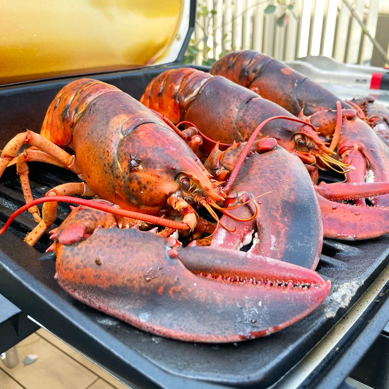 活ロブスターホタテ貝でバーベキューは大盛り上がり